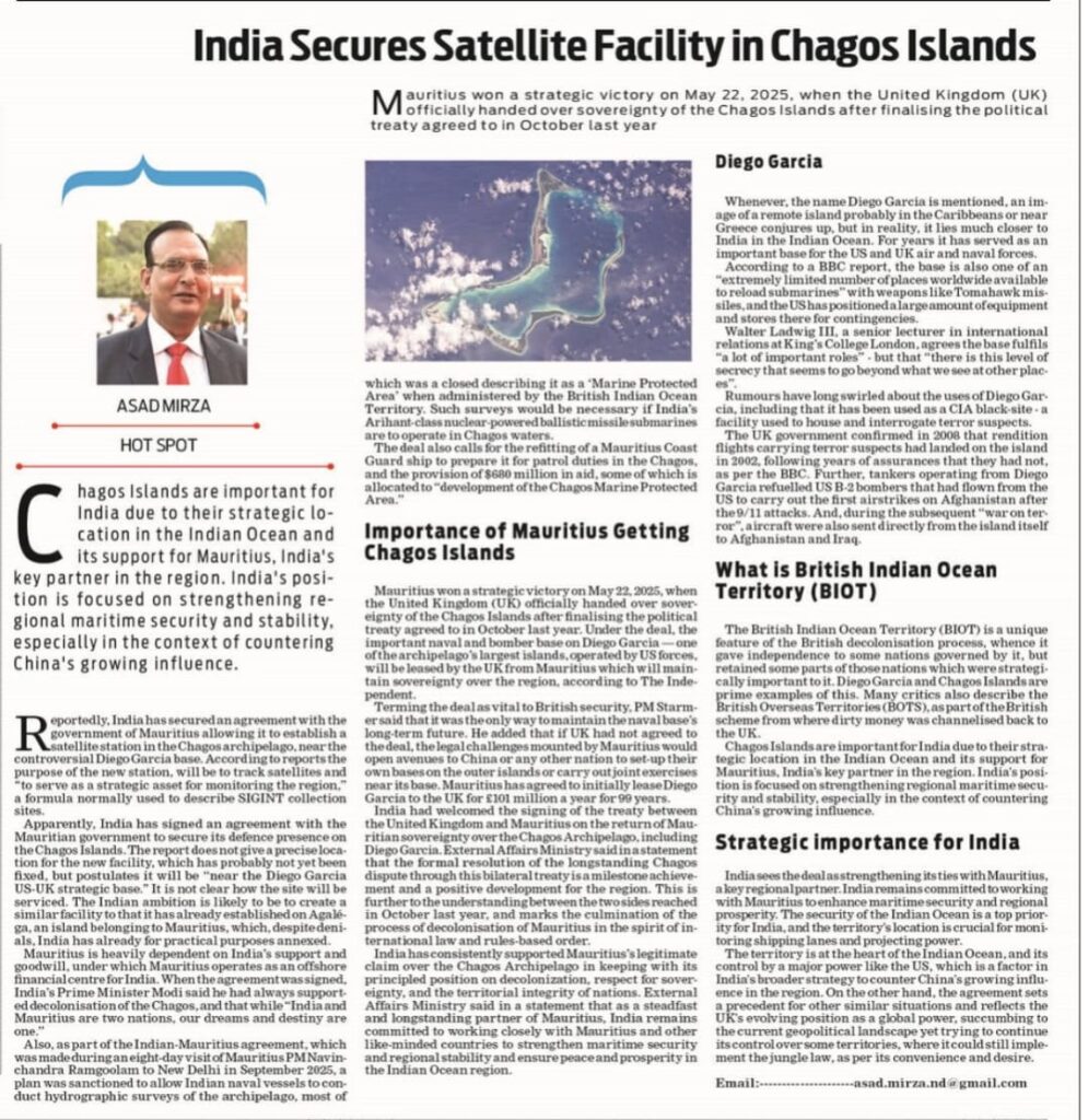 Chagos Islands are important for India due to their strategic location in the Indian Ocean and its support for Mauritius, India’s key partner in the region. India’s position is focused on strengthening regional maritime security and stability, especially in the context of countering China’s growing influence.